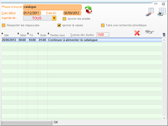 Ce module vous permet d'effectuer des recherches précises dans l'agenda