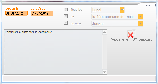 Ce module vous permet de supprimer des évènements identiques (évènements répétés par exemple) sur une période définie par vous-même.