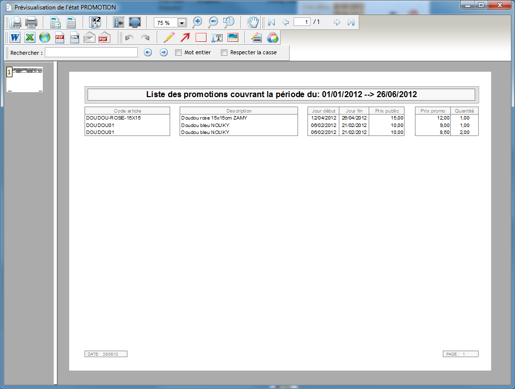 Ce module vous permet d'imprimer toutes les promotions en cours pour une période donnée.