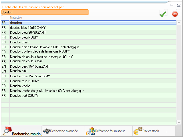 Ce module permet de retrouver un article par sa description ou référence fournisseur.