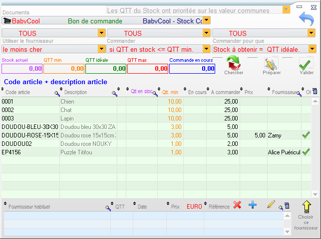 Ce module vous permettra d'automatiser vos commandes : Optimizze va rechercher tous les articles dont la quantité en stock est inférieure à la quantité minimum que vous avez défini.