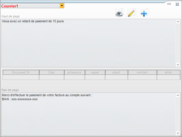 Ce module vous permettra de créer différents courriers types à envoyer à vos destinataires après x jours de retard de paiement.