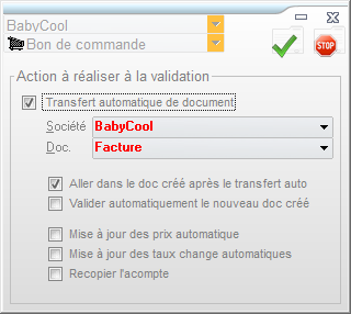 Cet assistant permet de configurer, lors de la validation d'un document, un transfert automatique vers un autre document.