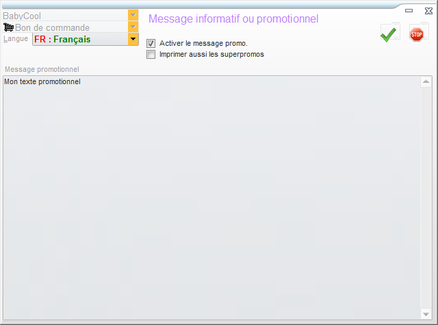 Assistant permettant de créer le message promotionnel ou informatif du document pour la langue sélectionnée.