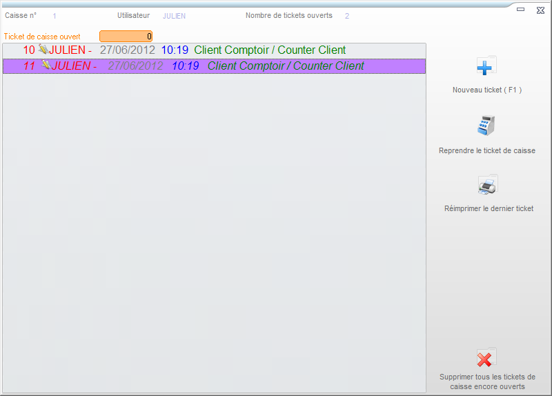 - interrompre et reprendre un ticket de caisse
