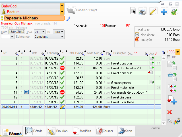 Le module de gestion de documents vous permet de créer, d’éditer ou de supprimer des documents (pex. factures, bons de commande, offres, note de crédit, bons de livraison, etc.) pour l’entreprise sélectionnée.