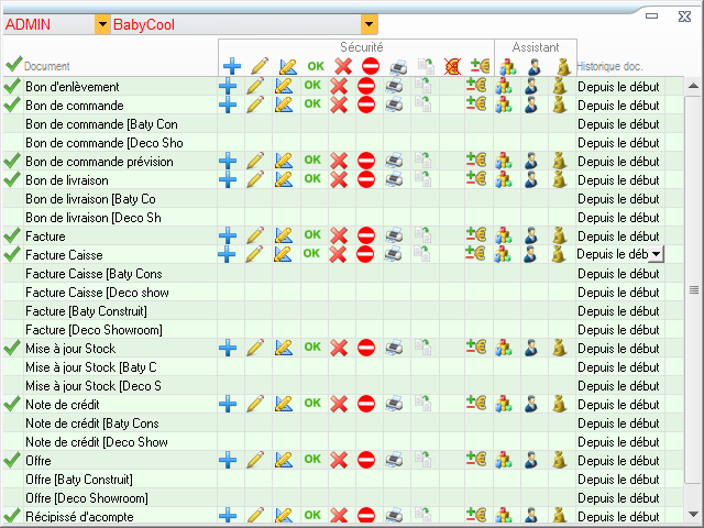 Vous pourrez ainsi définir, pour chaque type de document (bon de commande, facture, bon de livraison etc.), les droits de par rapport à ce type de document.