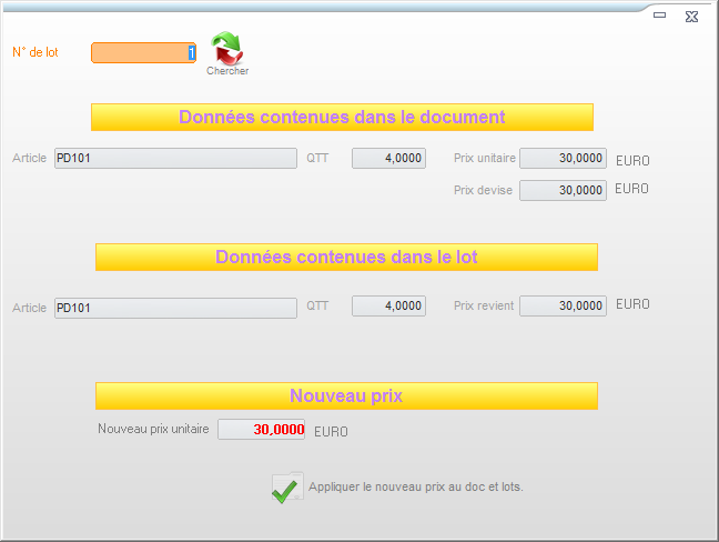 Ce module permet de modifier le prix d'un lot contenu dans un document, de modifier le prix d'un lot.
