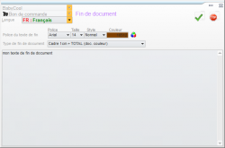 Il permet de créer le texte de fin de document pour le type de document et la langue que vous avez choisis. Vous pouvez sélectionner la police, la taille, le style, la couleur et le type de fin de document (paramétrer le cadre contenant le montant total).