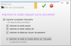 Assistant permettant de paramétrer l’affichage du solde impayé sur le document :