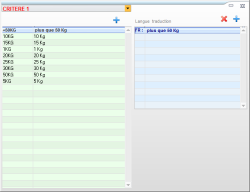 Il a pour but de gérer tous les champs divers, c.-à-d. tous les champs bleus et toutes les listes déroulantes bleues, en permettant de rajouter de nouveaux éléments et de les traduire dans les langues utilisées par votre entreprise.
