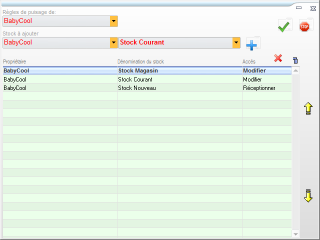Par règle de puisage, il est possible de définir le type d’accès (de la simple consultation de stock jusqu’à la modification qui permet de retirer du stock).
