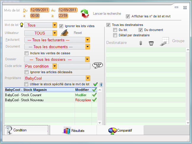 Stock - Statistiques de lots