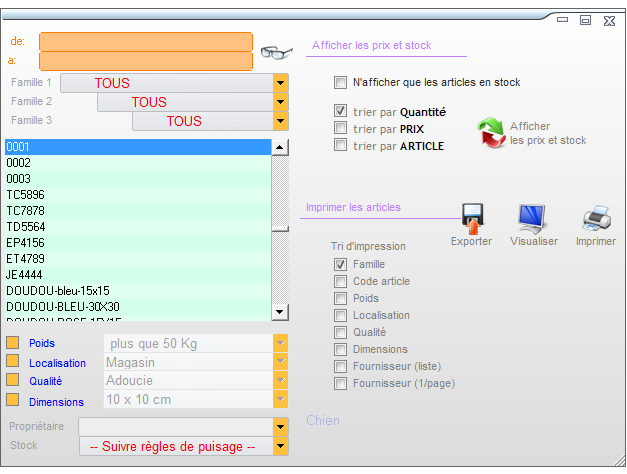 Module de statistiques sur les prix d'articles.