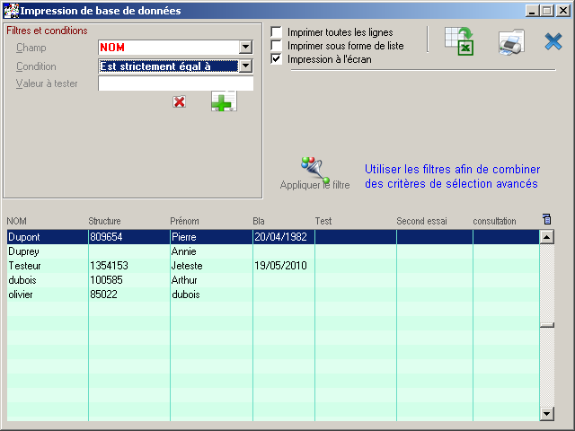 Une fois votre recherche effectuée, ce module vous permet d'imprimer les résultats et/ou de les exporter au format Excel.